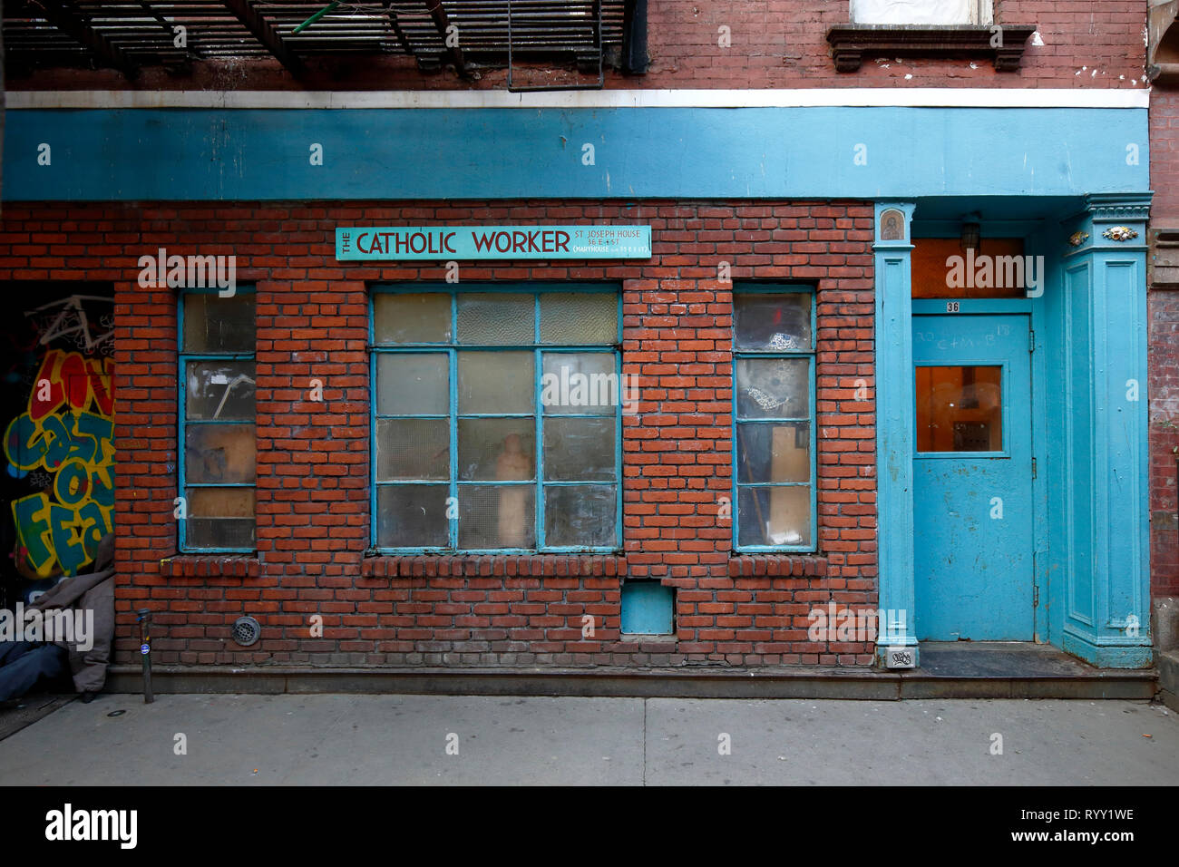 Catholic Worker St Joseph House 36 E 1st St New York Ny Exterior Storefront Of A Charity And Shelter In Manhattan S East Village Stock Photo Alamy